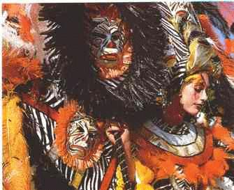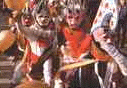 and skirts, their heads and back covered with goat skins topped by an impressive set of horns) and the madamas (young girls with short skirts with lace